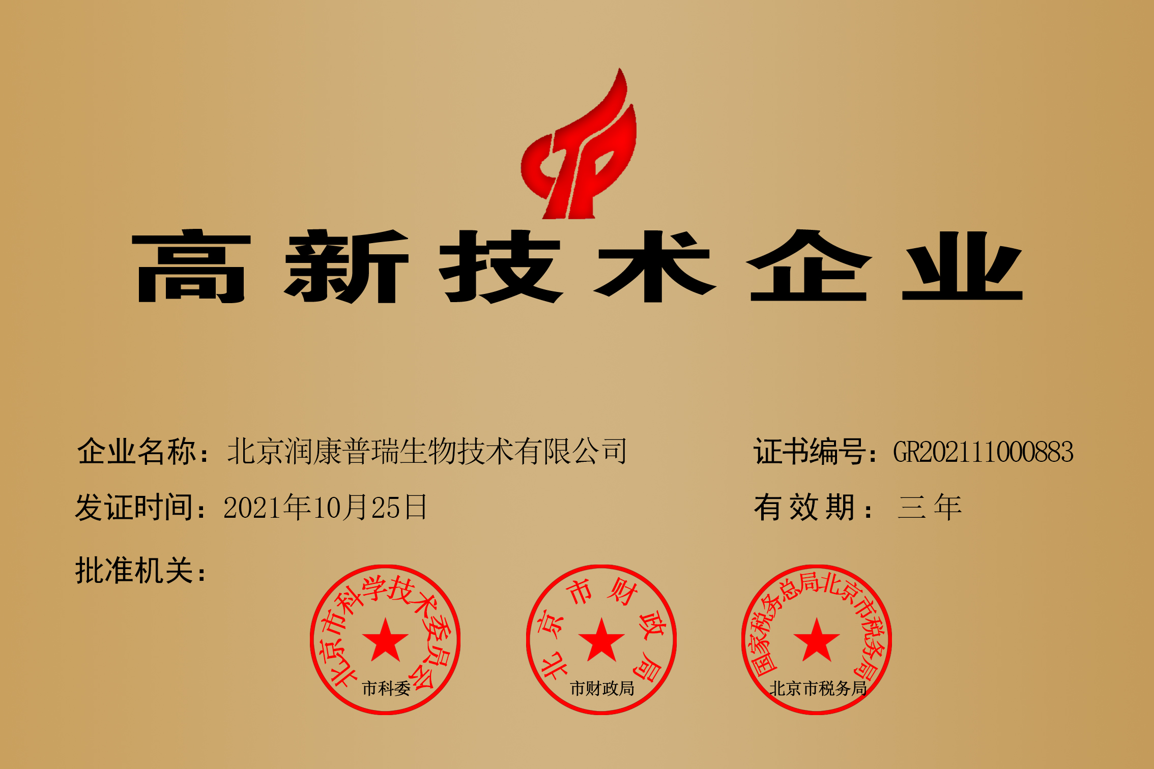 喜报 | 热烈庆祝润康普瑞第五次荣获国家“高新技术企业”...